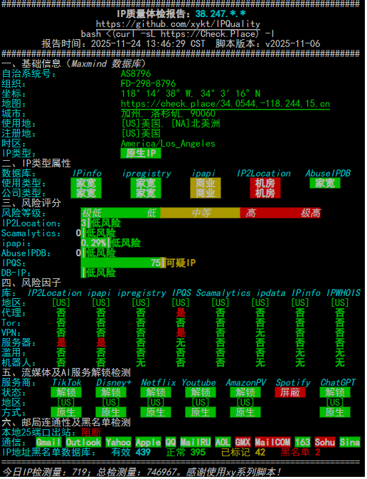 IPv4/IPv6 : ✔ Online / ❌ Offline