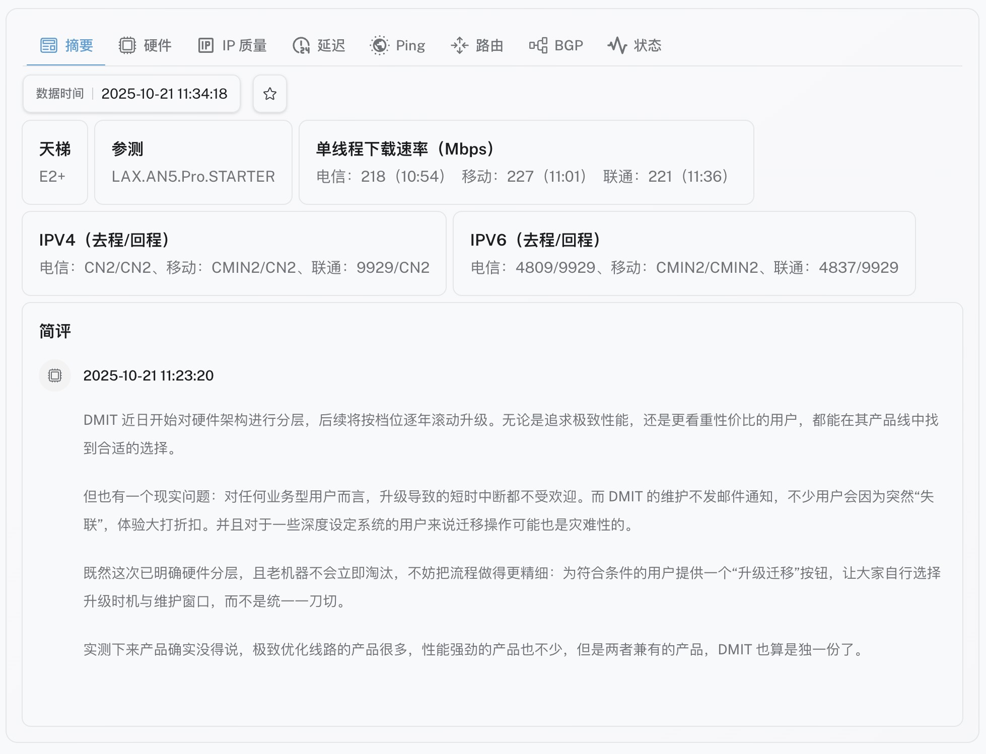 DigVPS - 又测又评 - DMIT(大妈)新增 Los Angeles Premium - AN5产品详评数据,硬件与优化线路的极致合体。