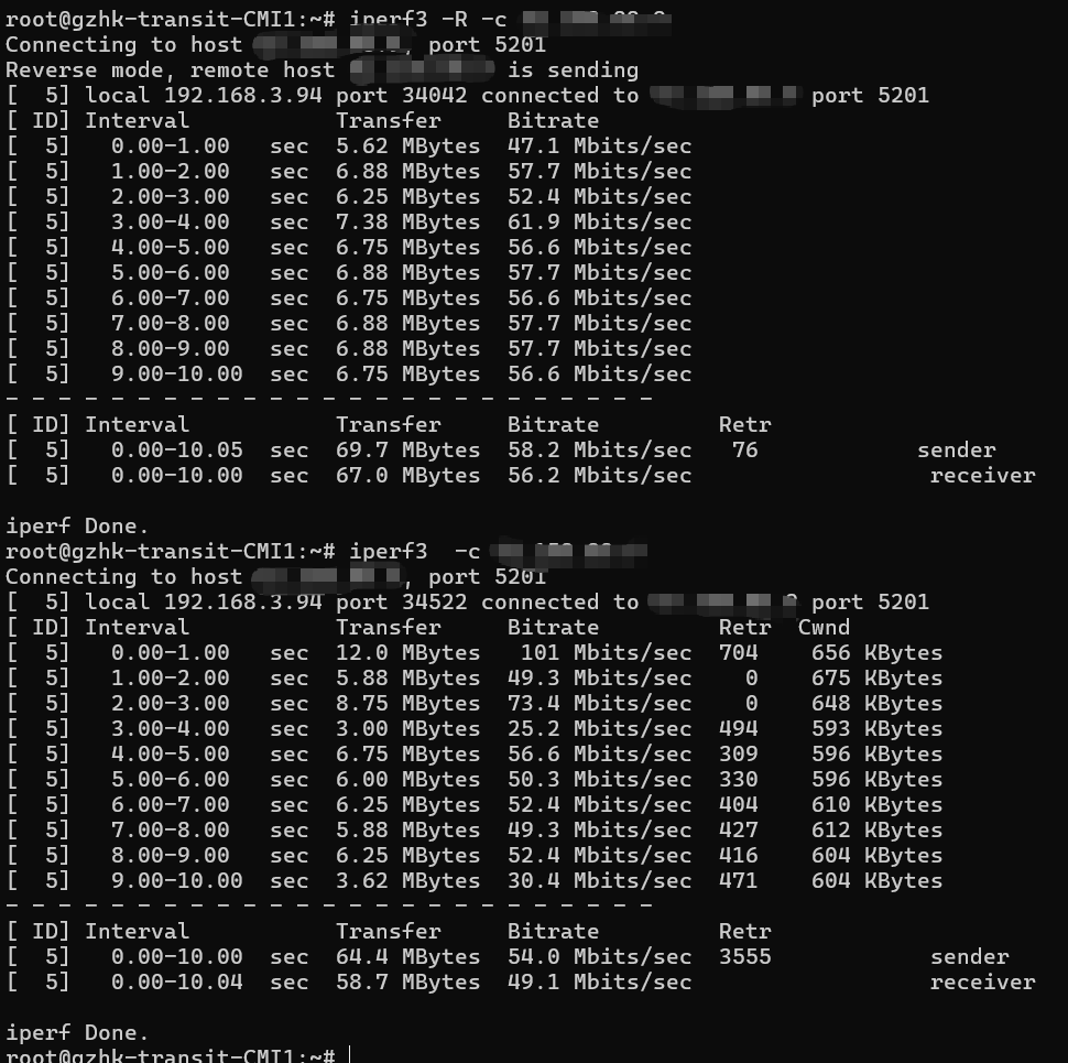 电移iperf3测试