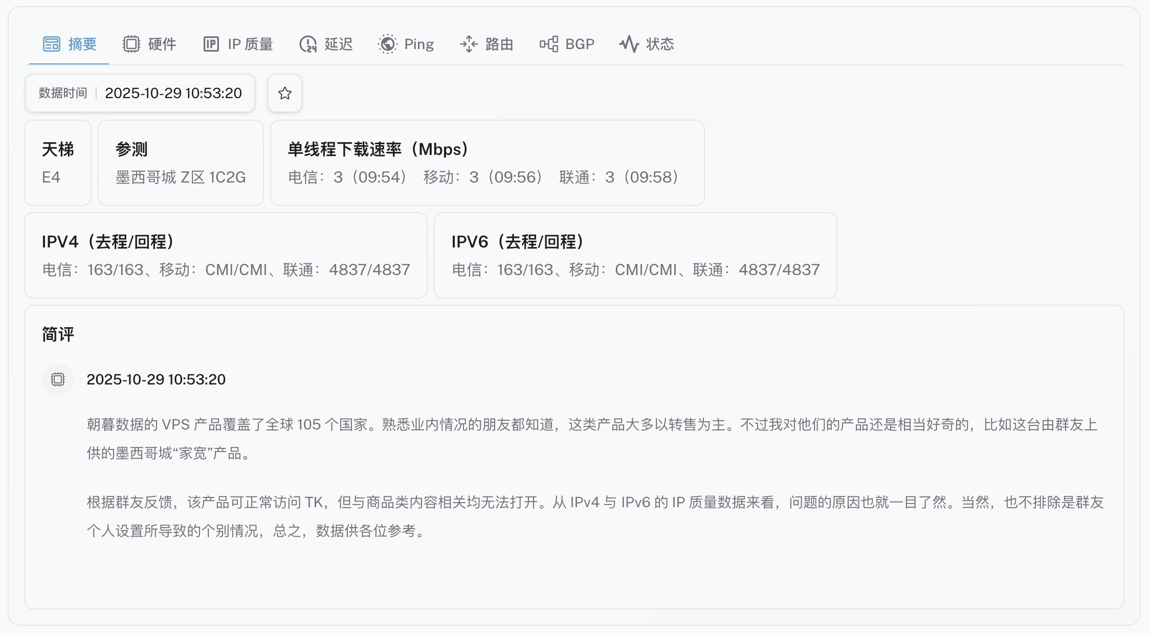 DigVPS - 又测又评 - 新增服务商朝暮数据,奉上墨西哥家宽产品详评数据。