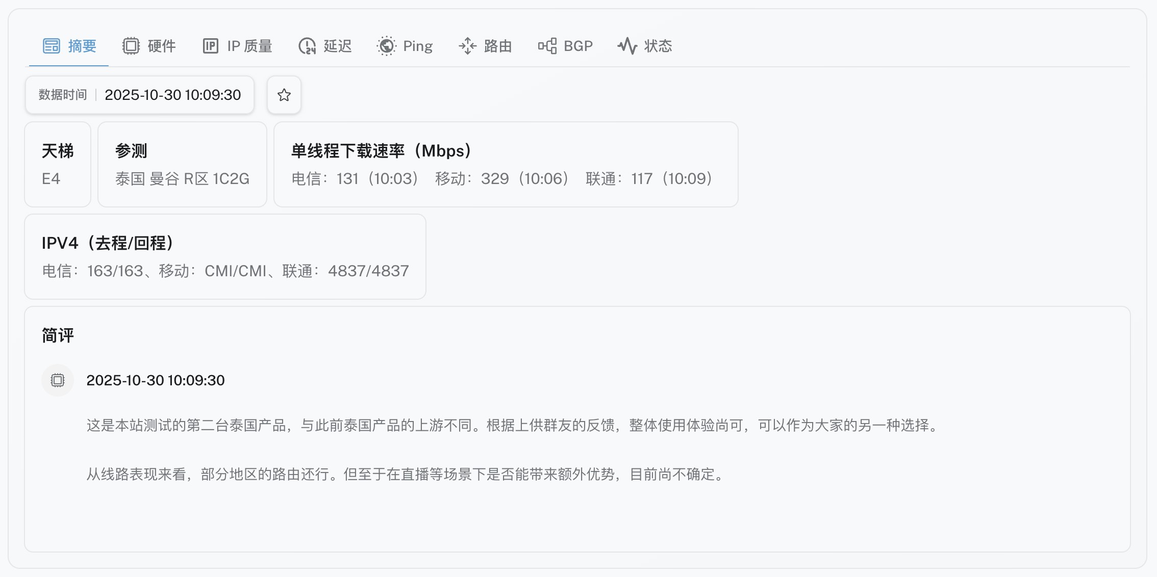 DigVPS - 又测又评 - 朝暮数据新增泰国曼谷云服务器详评数据,原生 IP,路由尚可。