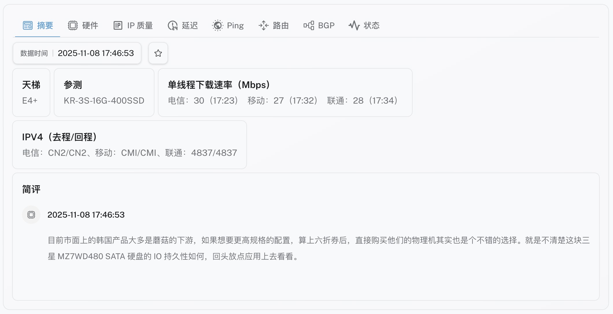 DigVPS - 又测又评 - 新增服务商 MOACK(蘑菇) 并奉上韩国KR CNDIA-Pro Servers ( CN2 )物理机详评数据,六折优惠中。