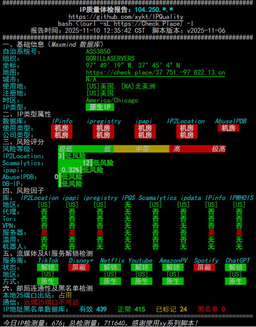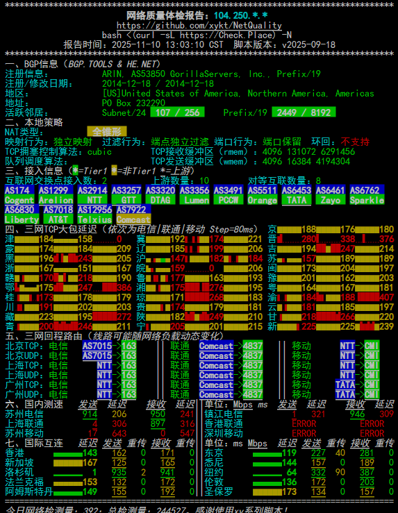 0.71 ms AS53850 * 美国, 加利福尼亚州, 洛杉矶, GorillaServers, Inc.