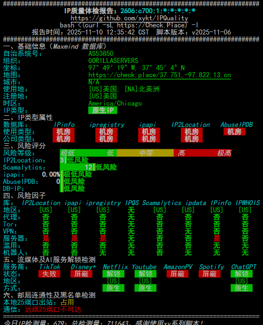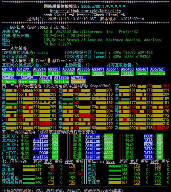 IPV6 ASN : AS53850 GORILLASERVERS