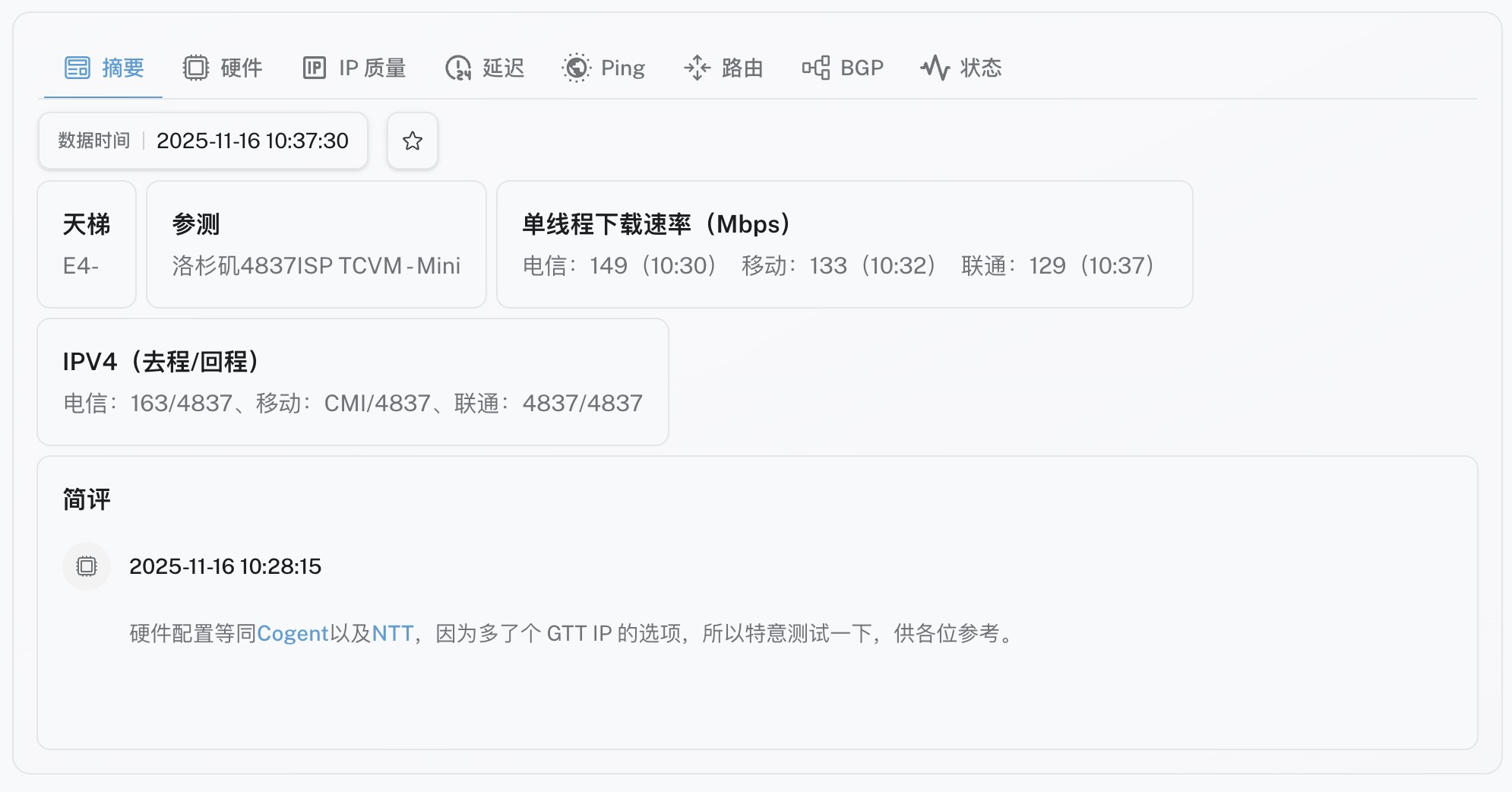 DigVPS - 又测又评 - 云悠(YUNYOO)新增洛杉矶 ISP - GTT产品详评数据,4837优化,GTT IP。